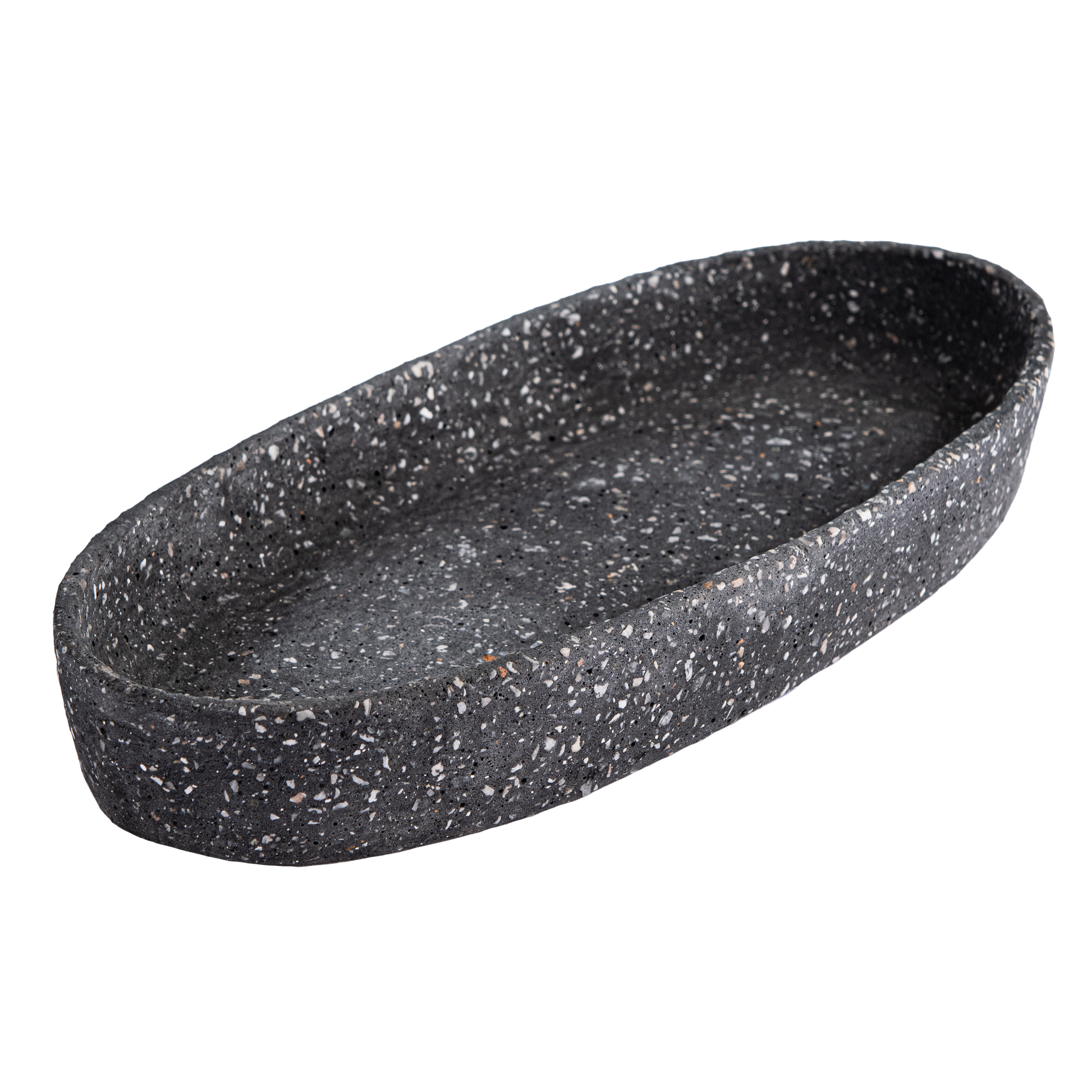 Handcrafted with a smooth, elongated oval form, this piece serves as a versatile decorative tray—perfect for holding candles, dried flowers, potpourri, beads, seasonal décor, or small collectibles. Its subtle terrazzo texture adds a modern, artistic touch while blending seamlessly with dining rooms, coffee tables, entryways, or office spaces.