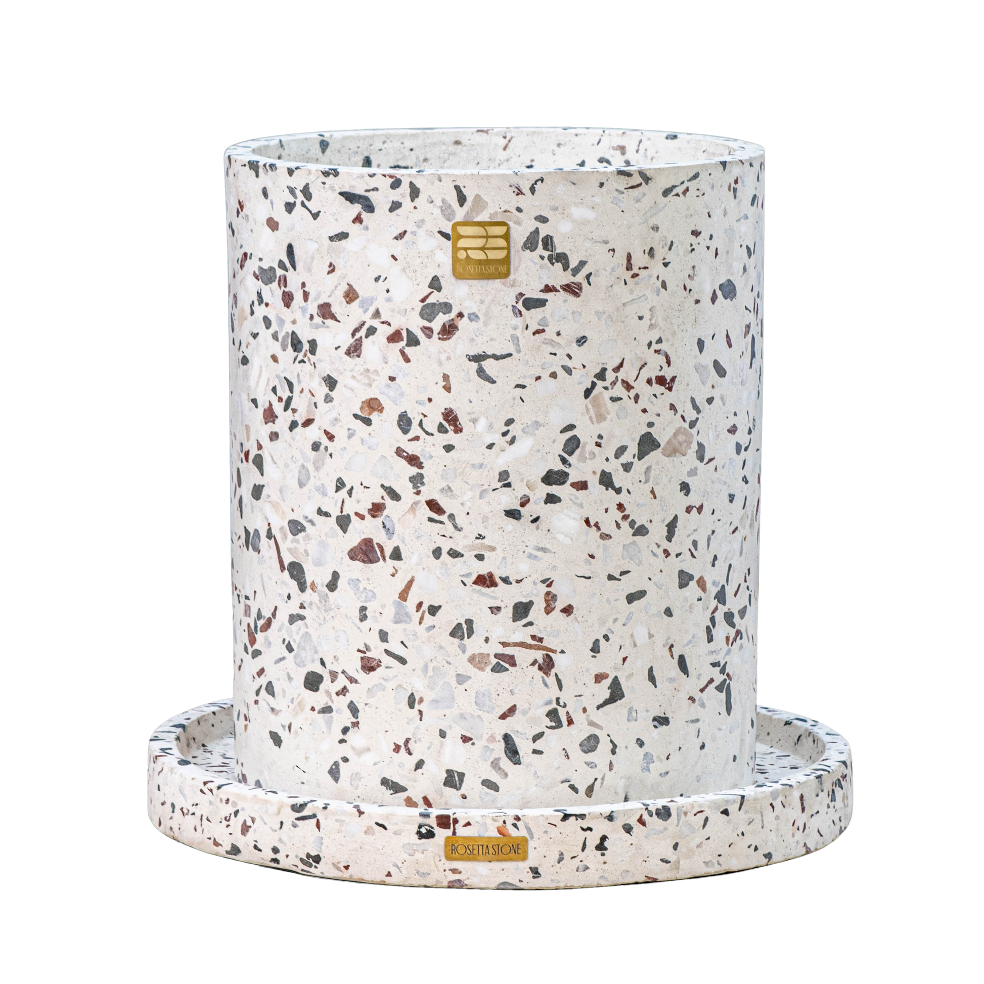Hapi in our new terrazzo style continues to rock in two sizes, boasting a sleek and minimalist design. With an optional table-top feature, it adds a storage advantage during times when planting is not on the radar.
