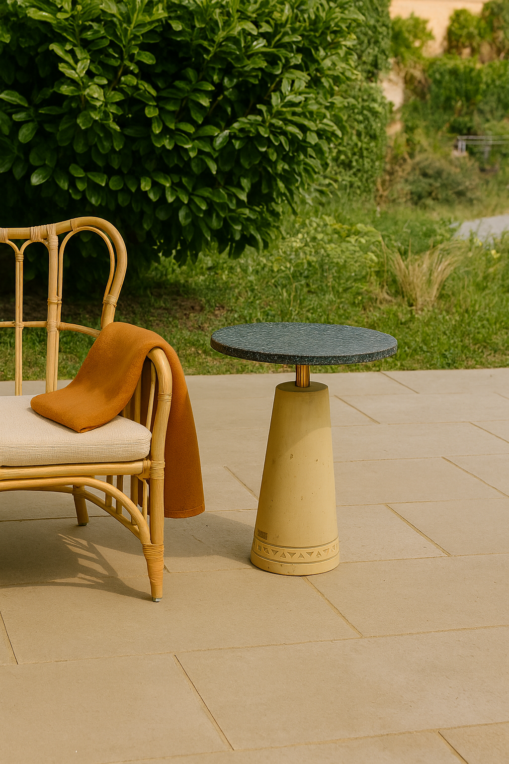 Meet Serapis—our signature side table where heritage meets modern design. Its bold concrete base available with Nubian motifs, supporting a 50cm terrazzo top available in multiple stone, glass or recycled GRC/GRP flaeks. This piece blends raw texture with refined artistry. Perfect as a functional sculpture for lounges or bedrooms, Serapis transforms spaces with its timeless narrative of culture and sustainability.