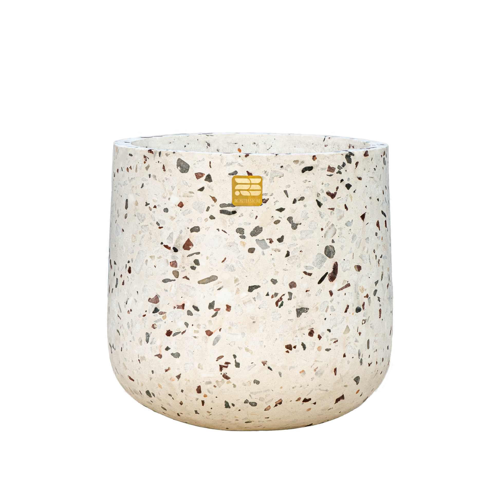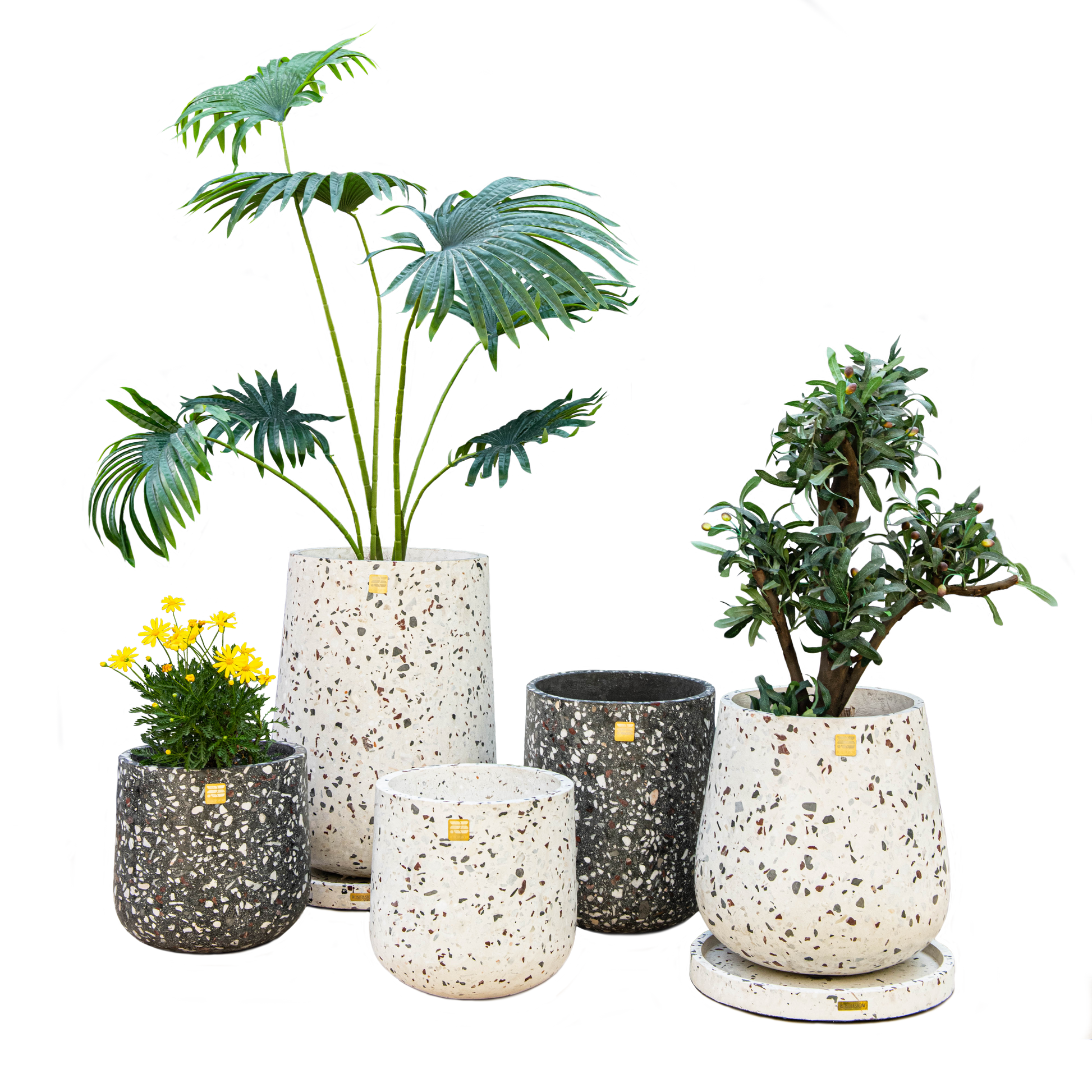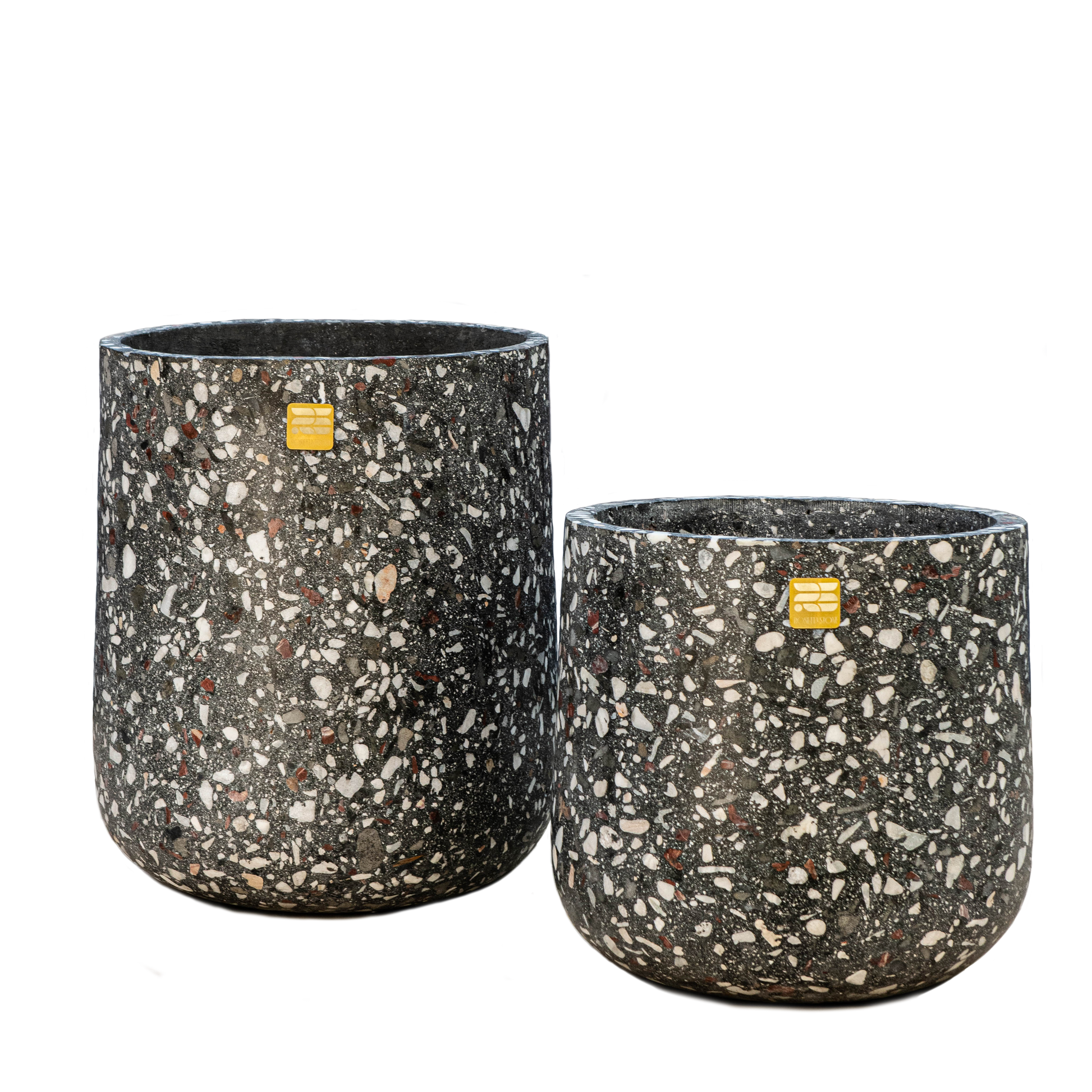 The Sia Terrazzo Planter, now available in GRC and GRP options; the perfect blend of style and durability for your gardening and outdoor living needs! Available in four sizes, Sia's unique well-like design showcases a stunning terrazzo finish, bringing a contemporary touch to your space. This enhanced version not only offers added hardness and resilience but also stands out with its eye-catching patterns, ensuring your planter is a true statement piece.