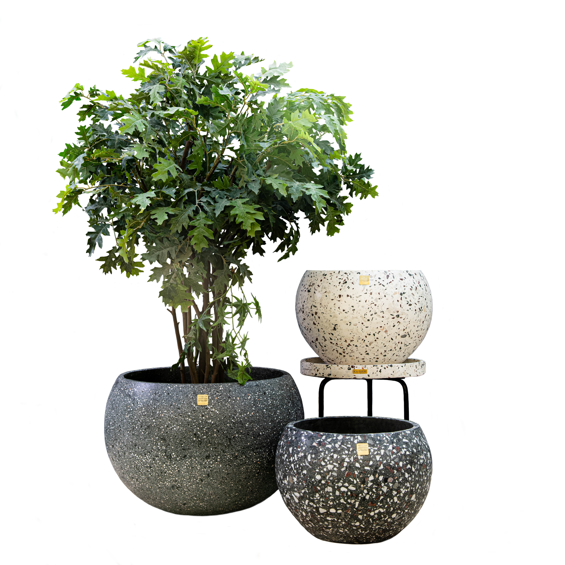 The terrazzo version of Tut sleek design round sleek pot design effortlessly complements any décor.